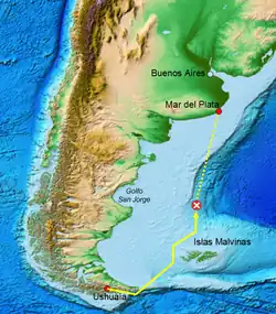 - ↑ a b c d e Costa, José María (19 de marzo de 2018). «Un documento de la Armada revela que el ARA San Juan habría pasado cerca de las Islas Malvinas». La Nación.
