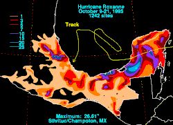 23. David M. Roth (6 de marzo de 2013). «Hurricane Roxanne - October 9-21, 1995». Weather Prediction Center. Consultado el 2 de junio de 2025.
