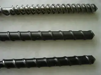 El husillo de extrusión es básicamente un tornillo de Arquímedes fijado por un extremo a un motor que lo hace girar a una velocidad angular previamente decidida en los procesos de Moldeo por inyección y extrusión. Este husillo tiene un canal separado por álabes que sirven para cortar y empujar el flujo. Sus formas y diseños son muy diferentes, dependiendo del polímero que se desee procesar. En ingeniería de polímeros no es común hablar de las características matemáticas de estos modelos, sino que se habla de un husillo de tipo Nylon o de Polietileno o de PVC, etc.