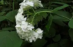 Hydrangea arborescens L., con el nombre común en inglés de smooth hydrangea, wild hydrangea, o sevenbark, es una especie de arbusto perteneciente a la familia Hydrangeaceae. Son de pequeño a medio tamaño, caducifolios que alcanzan los 3 m de altura y son nativos del este de los Estados Unidos.[2]