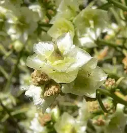 - ↑ «Hymenoclea». Tropicos.org. Missouri Botanical Garden. Consultado el 25 de agosto de 2012.