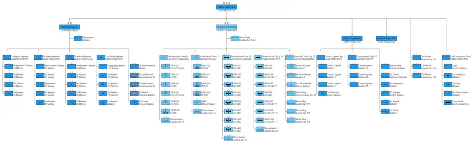 - ↑ imef.marines.mil (ed.). «I Marine Expeditionary Force In Every Clime and Place». Consultado el 4 de junio de 2016.