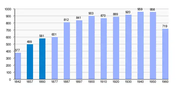 | Gráfica de evolución demográfica de Ibárruri[1] entre 1842 y 1960 |