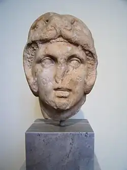 Cabeza de mármol procedente de Giannitsa.[34] | Museo Arqueológico de Pella.[26] |