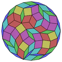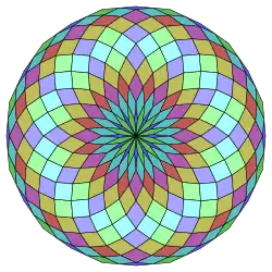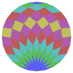 Harold Scott MacDonald Coxeter establece que todo zonágono (un polígono de 2m lados, cuyos lados opuestos son paralelos y de igual longitud) se puede dividir en m(m-1)/2 paralelogramos.[3] En particular, esto es cierto para polígonos regulares con muchos lados iguales, en cuyo caso los paralelogramos son todos rombos. Para el icositetrágono regular, m=12, y se puede dividir en 66: 6 cuadrados y 5 conjuntos de 12 rombos. Esta descomposición se basa en el polígono de Petrie proyección de un hipercubo.