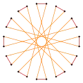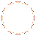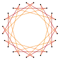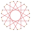 | Las aristas en zigzag de un antiprisma dodecagonal, de un antiprisma dodecagrámico o de un antiprisma dodecagrámico cruzado, forman un icositetrágono oblicuo regular | ||