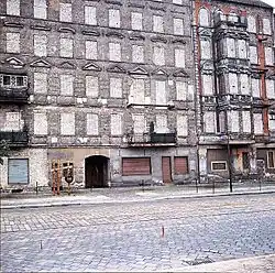 Las casas en el lado sur de Bernauer Straße fueron derribadas en 1963 y reemplazadas por un muro de hormigón.[6][7]