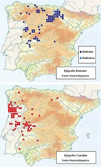- ↑ Joaquín Gorrochategui y José María Vallejo “Lengua y onomástica las inscripciones lusitanas” Universidad del País Vasco - Euskal Herriko Unibertsitatea