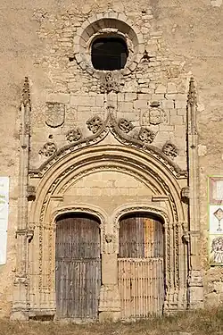 Es el único edificio que queda del conjunto original. La iglesia está construida en un estilo gótico isabelino, con una notable portada. El interior conservaba a finales del siglo XX la bóveda de crucería primitiva con sus nervaduras sin retoques ni alteraciones. El resto de la nave fue reformada en el siglo XVIII por Martín de Aldehuela, recubriéndose las paredes, artesonados y pilastras con yesos, según su estilo y época, resultando un estucado de notable belleza. También se conserva la tumba de sus fundadores, los marqueses de Moya –Andrés de Cabrera y Beatriz de Bobadilla— personajes destacados durante el reinado de los Reyes Católicos.[1]