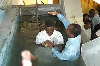 Creen que el bautismo debe administrarse únicamente por inmersión; no mediante aspersión, derramamiento, inmersión triple u otras formas. Enseñan que debe practicarse la ordenanza instituida por Cristo de lavarse los pies unos a otros en ocasión de la Cena del Señor; no creen que tal cosa fuera meramente un acomodo a las costumbres y necesidades de aquellos tiempos.[8][87][86]
