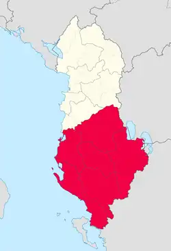 La administración apostólica de Albania Meridional (Administratio Apostolica Albaniae Meridionalis) de acuerdo al Anuario Pontificio 2021 tenía a fines de 2020, 1922 fieles entre latinos y greco-católicos en 11 parroquias servidas por 2 sacerdotes diocesanos y 6 sacerdotes religiosos,[15] contando además con 12 religiosos y 69 religiosas, que administran 10 escuelas y 20 instituciones caritativas. Su territorio comprende las prefecturas de Gjirokastër, Berat, Korçë, Elbasan, Fier y Vlorë. La procatedral de San Luis Gonzaga y Santa María (Kisha Katolike Shën Luigji Gonzaga dhe Shën Maria)[16] se encuentra en la ciudad de Vlorë.[17]