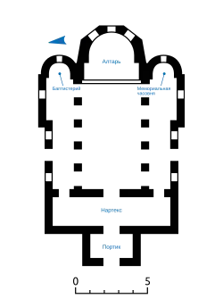 Los expertos del campo respectivo han sugerido que se trata de la iglesia construida por el emperador bizantino Justiniano I para las tribus abaza cuando se cristianizaron alrededor del año 543 d. C. Esta iglesia es uno de los templos cristianos más antiguos de Georgia, además del edificio más grande y más complejo de esta época en toda Abjasia. La presencia en una iglesia de reliquias bautismales y tumbas atestigua la importancia del centro religioso y el templo como lugar de peregrinación, siendo presuntamente la primera sede episcopal de los abasios.