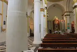 La imagen que se encuentra en el interior es una talla italiana de alabastro del siglo XVIII que según la tradición fue sacada de un barco al que las inclemencias del tiempo no dejaban salir de puerto;[6] fue muy dañada durante los asaltos antirreligiosos de mayo de 1931 pero restaurada más tarde, aunque no todos los elementos de la iglesia corrieron la misma suerte pues se perdieron el altar mayor y la Custodia.[7]