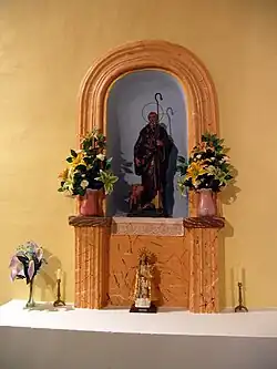 El interior actualmente se halla despojado de la mayor parte de su mobiliario original. Las imágenes son todas posteriores a 1939, ya que fueron destruidas durante la Revolución española de 1936: San Antonio de Padua preside el altar mayor, la Virgen del Rosario y San Antonio Abad se alojan en sendas hornacinas a los lados de la nave.