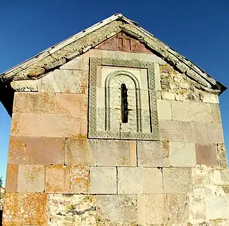 Se trata de un edificio de piedra labrada de una sola nave (con dimensiones exteriores de 9,05 x 5,42 m), cuya única entrada se abre desde la fachada sur. En el muro norte se conserva la pila del baptisterio. De la decoración exterior de la iglesia destacan los marcos esculpidos de las ventanas. En las paredes se conservan inscripciones georgianas en asomtavruli.