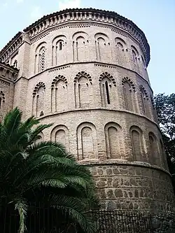 La ampliación, de una a tres naves, planteaba un problema de integración, en la cabecera: incorporar las naves al ábside, ya construido, problema que se resolvió por medio de dos espacios cuadrados, cuyos paramentos exteriores repiten la organización del juego de arquerías del ábside central, donde el primer piso se compone de arcos de medio punto, el segundo de arcos califales con trasdós polilobulado y el tercero y superior de arcos califales con trasdós de arco de herradura. La proximidad de la fecha de construcción, entre éste y aquellos, justificaría la extraordinaria similitud en la técnica y tipología de los arcos, que les hace aparentar que constituyen una misma obra.