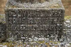 En la plaza frente al pórtico, se encuentra una cruz de piedra, en cuya base se lee: