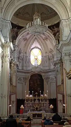 A los lados hay una monumental sillería del coro de madera. El coro y el órgano se encuentran en el presbiterio, detrás y al costado del altar mayor respectivamente. El instrumento es famoso por las prácticas de Vincenzo Bellini, el gran compositor que vivió en el cercano Palazzo Gravina Cruyllas cuando era joven.