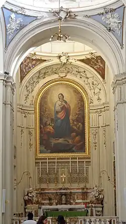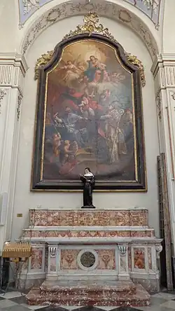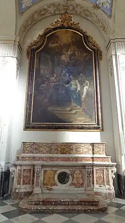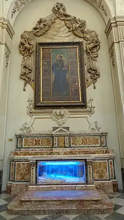 - Segundo tramo: Capilla de San Giuseppe da Copertino. En el altar hay una pintura sobre lienzo que representa el de San José de Cupertino con Juan Federico de Braunschweig, obra de Giuseppe Rapisardi de 1830.