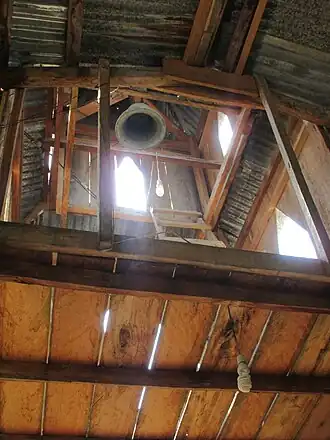 ![]() Campana de la época colonial española dentro de la iglesia. | ||