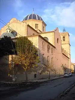 La iglesia tiene dos torres que hacen de campanarios. La de la izquierda tiene las campanas, la de la izquierda dispone de "la carraca", que sonaba durante la época de Cuaresma para avisar de las horas de culto cuando estaba prohibido que sonaron las campanas.