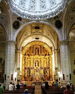 La planta es de cruz griega abierta entre sus brazos, formando un volumen ininterrumpido, de suerte que se forma una circuito para la serie de capillas dispuestas en sus muros en torno al ámbito central. Unas bóvedas enriquecidas con elaboradas yeserías cubren el deambulatorio, mientras en el centro, sobre gruesos pilares de sección octogonal, se alza una gran cúpula gallonada e iluminada por una linterna.