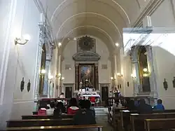 Cuenta con una pequeña fachada a la plaza a la que da nombre. La fachada es de gusto clasicizante. El templo es de una sola nave, con una bóveda acañonada. En su decoración, el interior presenta el aspecto derivado de las reformas de los jesuitas a mediados del siglo XVIII.