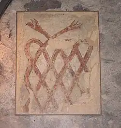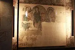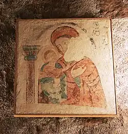 En 1954 se descubrieron unas pinturas a raíz de la restauración de la iglesia. Se encontraban en el arcosolio de la derecha del presbiterio, y son de temática mariana. Se fijaron sobre tela y, una vez terminada la restauración, se colocaron en un lugar diferente de la ubicación original, en el arcosolio de la izquierda, tras una protección de vidrio. Se trata de tres paneles, pintados a mediados del siglo XIII.[2] El mayor contiene dos escenas, una de la Anunciación y otra de la Visitación. El segundo en importancia es un anfisbena, una serpiente de dos cabezas, una a cada extremo. Es un símbolo de origen muy antiguo que se ha relacionado, en la Edad Media, con el catarismo. En este caso, aunque hay la posibilidad de que la fluidez de comunicación de esta zona con el Languedoc facilitara la presencia de cátaros en la región, cabe pensar más bien que es un símbolo relacionado con la Virgen (AVE María) que es el fin del pecado, contrapuesto con la primera mujer (EVA), iniciadora del pecado original.[3] El panel más pequeño es una imagen de la Virgen con el Niño, de clara influencia bizantina. Este conjunto pictórico se atribuyó inicialmente al Maestro de Lluçà, aunque estudios posteriores parecen indicar que fueron ejecutados por un taller de pintores neobizantinos.