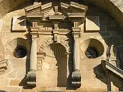 Es un edificio barroco en el que se notan las influencias del barroco colonial, en concreto del peruano. Toma como modelo la iglesia de las Capuchinas de Lima.[2] Está construida en piedra de sillería. Tiene planta de cruz latina y una sola nave. Sobre el crucero hay una cúpula sobre pechinas. Destaca de esta iglesia su fachada occidental, con dos grandes torres cuadradas que enmarcan una portalada. Las torres están rematadas por pirámides de piedra, con balaustrada y pináculos. La portada principal tiene un arco, frontón partido y dos óculos o vanos circulares. Y toda ella queda bajo otro gran arco de medio punto. En la fachada sur hay otra portalada de estilo semejante.