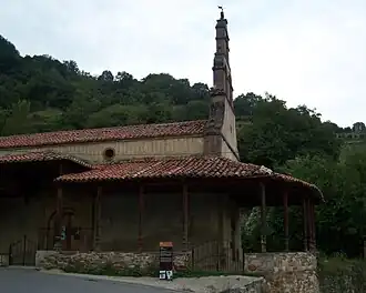La iglesia es de una nave, rematada en un ábside semicircular con un tramo recto inmediatamente anterior. El templo sufrió muchas modificaciones a lo largo de los siglor pero la que más modificó su estructura y aspecto externo fue la que se realizó e el siglo XIX que incluía la construcción de dos capillas laterales, dos sacristías y la espadaña. La portada que mira al sur es un arco de medio punto apoyado sobre impostas sin ninguna decoración. Sobre la portada aparecen tres canecillos donde uno de ellos, el de la izquierda representa al Buen Pastor porque representa a Jesús con un corderillo sobre los hombros como una alegoría a la salvación de las almas gracias al apoyo y esfuerzo de Jesús. Las impostas están decoradas con clavos y los capiteles con hojas de palma en la zona derecha y lanceoladas con en el izquierdo. Las paredes internas del ábside tienen pinturas de cuatro parejas de santos.[2]