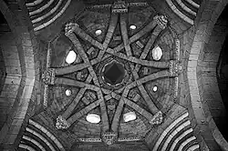 Las tres naves están separadas por arcos torales muy apuntados. Una bóveda de crucería del siglo XV cubre el segundo tramo de las naves. El primer tramo de la nave central está cubierto por una cúpula de arcos cruzados. En el crucero encontramos una cúpula, con claros rasgos de arte musulmán, formada por arcos de medio punto y trompas, con las que se consigue pasar de una planta cuadrada a una octagonal. Los arcos forman una estrella de ocho puntas con ocho ojos de buey que iluminan el interior. Los capiteles del interior están decorados con figuras de animales, monstruos y una doble cuerda.
