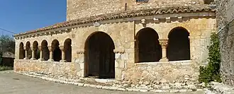 Construida en el siglo XII, contaba originalmente con una sola nave y un ábside semicircular, habituales en el arte románico. En el siglo XIII se le añadió una galería porticada, característica de las iglesias románicas castellanas. Se conserva su parte sur (ocho arcos) y una sección de la oeste (dos). Los capiteles de la galería se hayan labrados y los canecillos del techo de la galería muestran motivos diversos.