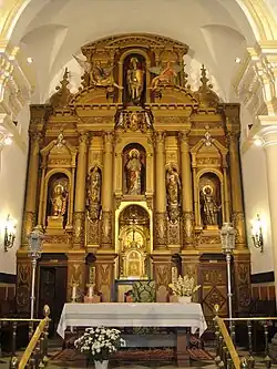 - Retablo de San José: de madera sobredorada y con columnas salomónicas en los extremos, en él se halla la imagen de San José con el Niño Jesús, de talla. Éste retablo se encuentra en la capilla del Sagrario y a sus pies se dispone un altar de mármol, sustentado por columnitas del mismo material, sobre el que se dispone el Sagrario, de bronce dorado y de estilo neobarroco. En la actualidad se usa este sagrario, mientras que permanece inactivo el situado en el altar mayor.