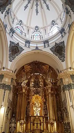 Ya en su interior, el retablo mayor barroco se cree que debió ser construido según trazas de Jaime Bort ya que su diseño recuerda el cuerpo central de la fachada de la Catedral de Murcia, del mismo autor.