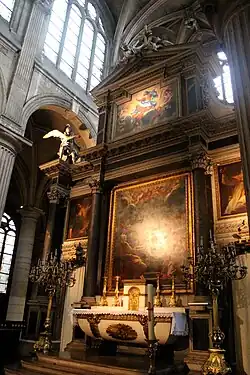 La iglesia tiene uno de los pocos retablos monumentales del siglo XVIII todavía in situ en una iglesia de París a pesar de la agitación revolucionaria. El monumental altar mayor de mármol fue creado en 1629 por el escultor Jacques Sarazin (1592-1670). Las pinturas Les Apôtres au tombeau de la Vierge y L'Assomption de la Vierge fueron ejecutadas por Simon Vouet (1590–1649). Se eleva hasta 12 m de altura por encima del altar.