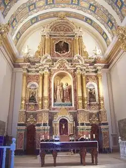 Destacan los altares realizados en madera (son los de Cristo, Sagrado Corazón y de la Inmaculada Concepción), así como la mesa del Altar Mayor (hecha de marquetería y patas de nogal tallado). Estos fueron realizados por el artesano local Antonio Corella, conocido como "tío Ronchingue", durante la última posguerra, pues los originales barrocos -incluido el Retablo Mayor- fueron destruidos en 1936.