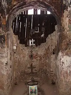 Es una iglesia de planta centralizada, de cruz griega y con cúpula, de 7,40 m de largo y 6,21 m de ancho. El ábside, semicircular, tiene una ventana larga y estrecha. La cúpula, desaparecida, se levantaba sobre un tambor con cuatro ventanas. Los muros se construyeron en piedra, mientras que cúpula y arcos se hicieron de ladrillo, que en algunos puntos forman motivos decorativos. En algunas zonas las paredes se conservan dos series de frescos, mientras que en otras se han perdido. Se tratan los temas de la Última Cena, el Lavatorio, la Oración del Huerto y la Traición de Judas, entre otros.