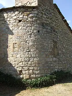 El aparato está hecho con sillares de piedra caliza del lugar, bien cortados y dispuestos de forma muy regular. Todo ello evidencia una construcción del siglo XII, pero con afectaciones muy importantes de los siglos posteriores, que la han desfigurado un poco.