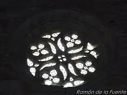 Sobre la portada hay un arco ojival, de apertura muy posterior. En la parte alta de la fase renacentista existen dos óculos polilobulados.