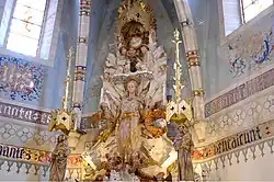 En el ábside hay un retablo modernista de Josep Maria Jujol. Jujol hizo el retablo por encargo del párroco Francisco Camino, ya que la iglesia había perdido sus obras durante la guerra civil española. Es un retablo de alabastro que se adapta perfectamente al marco gótico que la rodea. Entre 1942-1943 se hizo la mesa y el basamento del retablo hasta el pedestal de las imágenes. Entre 1944-1945 se hizo la imagen central (una Virgen de José Arana Esteban), los ángeles, la Santísima Trinidad y todas las ornamentaciones.[2]