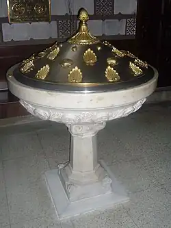 Entre los atlantes que sostienen el retablo del altar mayor hay dos entradas a las sacristías, encima de cada una figura el escudo de la ciudad. Entrando, a mano derecha, y en la primera capilla lateral, hay un cuadro alegórico de Segimon Ribó, que representa la sudoración sanguinolenta del Santo Cristo de Igualada. El baptisterio, de estilo modernista, es obra de Ignasi Colomer, y se encuentra a la izquierda de la entrada. La cripta, situada debajo del presbiterio, fue construida después de la guerra civil, a partir de un proyecto de César Martinell. En la fachada de la iglesia hay dos placas que conmemoran la participación del somatén igualadino en la batalla del Bruc. La mezcla de elementos que integran Santa María es fruto de las diversas etapas constructivas que se han sucedido y también consecuencia de los avatares históricos. Por todo ello, visitar la basílica es tanto como hacer un recorrido por la historia de Igualada y por la historia del arte.