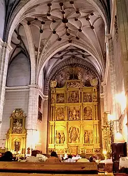 Lo primero realizado fue la capilla mayor, interviniendo en la construcción Rodrigo Gil de Hontañón y otros artistas de primer orden. Debajo se dispuso una gran cripta para alojar los restos mortales del patrono y sus familiares.