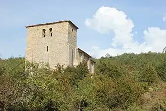 Esta construcción se data del segundo tercio del siglo XII. El edificio, de pequeñas dimensiones está compuesta por una ábside semicircular, precedida por un tramo recto, una sola nave de tres tramos desiguales y una torre campanario, de cuerpo prismático, a los pies.[15][16] En el interior los espacios vienen marcados por pilastras de imposta lisa, sin decoración, que sustentan los arcos fajones de una bóveda de medio cañón rebajado.[17] En el exterior se muestra «un hermoso conjunto de sillar, de logradas proporciones, con los muros laterales reforzados por contrafuertes, apenas resaltados, que llegan hasta la línea del tejaroz«, aunque, de forma incoherente a lo que cabría esperar, los contrafuertes que presenta no coinciden con la ubicación de los arcos fajones del interior.[17][18]