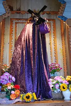 Posee santos de madera y de vestir propios del arte religioso español de los jesuitas y franciscanos. Entre ellos, san Francisco de Asís y san Pío de Pietrelcina.