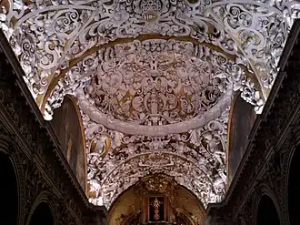 Las yeserías de la bóveda central y de la cúpula fueron realizadas por Borja y Pedro Roldán.[11]