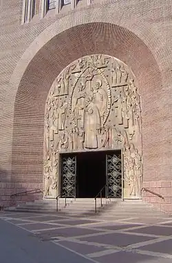El arquitecto fue Jacques Barge quien decidió inspirarse en la arquitectura bizantina. La estructura es de hormigón armado. El basamento está revestido de ladrillos en gres rosado de Saverne,[5] la piedra de la catedral de Estrasburgo.