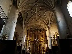 La fábrica del siglo XVI se acopla a la perfección a los muros románicos, ampliando el espacio con crucero y cabecera y dando como resultado una iglesia de grandes dimensiones. Es perfectamente visible la diferencia entre el muro medieval, de sillar gris oscuro, del moderno, de tono más claro y amarillento. Las obras comenzaron en 1543 y se terminaron en 1566, bajo la dirección, sucesivamente, de dos canteros guipuzcoanos: Martín de Oyarzábal y Lázaro de Iriarte. Se trata de una iglesia de excelente cantería, muy espaciosa, con una planta de cruz latina de tres tramos más una cabecera poligonal. Los dos primeros tramos vienen separados por contrafuertes internos. Sobre el primero de ellos se alza el coro, mientras que en el segundo, entre ambos pares de contrafuertes, se disponen sendas capillas. Estos contrafuertes aparecen redondeados en sus extremos a modo de semicolumnas, a las que se añaden unas basas y molduras a modo de capitel con dentellones. El mismo tipo de molduración aparece en el arco que se abre a la cabecera. Las cubiertas son bóvedas estrelladas con conopios, de diferentes diseños, propias del gótico tardío español del siglo XVI, cuyos nervios descansan en ménsulas semicirculares con decoración vegetal. El coro fue concluido en 1575. Se alza una altura sobre tres arcos rebajados, mayor el central, que se apoyan sobre dos columnas exentas de fuste acanalado y otras dos adosadas, con capiteles de follaje. La escalera presenta en el pilar del que arranca el pasamanos un león que porta una cartela.