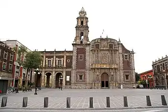 Los arcos que se aprecian a la izquierda del templo no son originales, fueron construidos durante las obras de restauración de la zona con motivo de la Olimpiada de 1968 por razones estéticas, para ocultar la entrada de la calle de Leandro Valle y armonizar el conjunto. Dichos arcos albergan un salón de usos múltiples y un elevador.