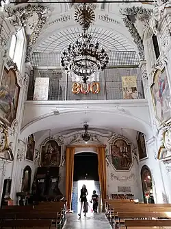 - Muro del presbiterio con fresco Visión de las "Bodas Místicas" con Jesús ofreciendo un clavo de la cruz rematado por un tondo con un busto de San Pablo Apóstol.
