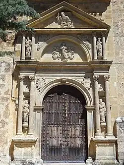 El acceso a la segunda nave construida se hace por un lateral (lado de la epístola) a través de una portada de tipo renacentista. Esta portada presenta dos cuerpos enmarcados por columnas pareadas, con esculturas en los intercolumnios. En el centro del cuerpo superior el relieve de la Asunción se cobija bajo arco solio, motivo éste que vemos en otras obras de Andrés de Vandelvira.